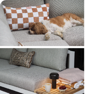 Suns Lifestyle furniture cushions are made from high-quality, innovative woven fabric which while suitable for outdoor use all year round, is thick and soft to the touch. On top of the Savona lounge set, Melanie added extra cushions in contrasting patterns and a few throws to layer up in if there is a chill in the air.