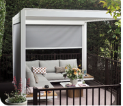 Also available for the Rota Louvered Pergola is the ability to add on Deluxe Screens. These pull-down screens – made from Textilene – provide privacy and protection, while also keeping the occupied space inside light and bright.