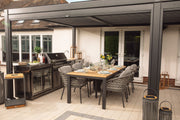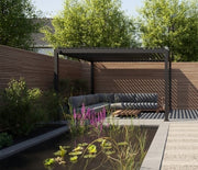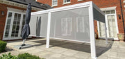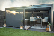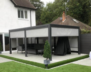 Our Galaxy Louvered Pergolas allow you to create the ideal garden set up with the addition of sun screens for added protection. This design can be positioned as a standalone structure or connected to an existing building as a stylish extension for an al fresco dining space or a sheltered area for an outdoor kitchen, bar area or hot tub. Sun Screens are available for extra shade and privacy.