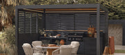 A retractable pergola system offers the best of both worlds – open-air cooking when the weather permits and reliable protection from the elements when it doesn’t. The motorised louvered roof can be adjusted with the touch of a button, allowing you to control sunlight, shade, and ventilation with precision.